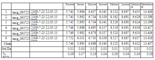表 2. 八種糖 標(biāo)準(zhǔn)品分離分析數(shù)據(jù)