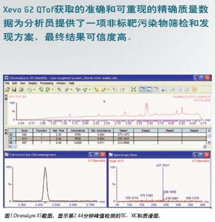 Oasis HLB SPE 提取,快速 ACQUITY UPLC 分離, Xevo G2 QTof 探測以及隨后 ChromaLynxMS 軟件進(jìn)行的數(shù)據(jù)處理成功篩檢了天然河水。
