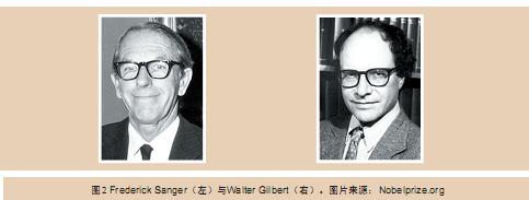 自從諾貝爾獎得主Frederick Sanger和Walter Gilbert(圖2)分別發(fā)明了鏈終止法DNA測序技術(shù)(sequencing by chain termination technique)和鏈斷裂法DNA測序技術(shù)(sequencing by chain fragmentation technique)之后,人們就一直希望能夠擴大DNA測序技術(shù)的處理規(guī)模。到了今天,我們對測序技術(shù)的需求和對計算機技術(shù)的需求一起出現(xiàn)了迅猛的增長,因為測序技術(shù)的發(fā)展速度已經(jīng)遠遠跟不上實驗要求的增長速度。于是出現(xiàn)了好幾種替代Sanger測序法的新型測序方法,比如雜交測序法、借助原子力顯微鏡(atomic force microscopy)直接DNA成像測序法(direct imaging of DNA sequence)、質(zhì)譜分析法、合成測序法以及微液流測序法等等。在我們進行人類基因組計劃時還出現(xiàn)了三項技術(shù)改進方法,即使用熒光標(biāo)記物取代了放射性標(biāo)記物來標(biāo)記終止堿基(雙脫氧堿基);使用毛細管電泳(capillary electrophoresis)取代了傳統(tǒng)的平板凝膠電泳;建立了末端配對測序法(paired-end sequencing)來對質(zhì)粒、fosmid、人工細菌染色體(BAC)等短片段序列進行測序,解決了測序長度帶來的限制問題。同時,開展研究的自動化液體分裝技術(shù)(liquid-handling robotics)幫助我們擺脫了人工試管操作,可以用自動化的方式在微量滴定板(microtiter plate)上裝載待測序樣品(質(zhì)粒等),極大地降低了測序的費用和勞動強度。