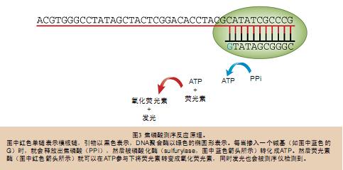 合成測序法概念雖然在提出的時候還不算成功,但它的出現(xiàn)為測序儀小型化奠定了基礎(chǔ);诤铣蓽y序法出現(xiàn)了兩種策略:一種是循環(huán)可切除終止測序法 (cyclic reversible termination technology),即依次逐個添加熒光標(biāo)記的堿基,繼而檢測熒光信號,切除熒光基團,如此往復(fù);另一種策略是焦磷酸測序法(sequenced by detecting pyrophosphate release)。454測序儀采用的正是焦磷酸測序法,因為它似乎比第一種方法的效率更高。結(jié)果證明,454公司的選擇是正確的。454測序儀采用的是小型化焦磷酸測序反應(yīng),測序模板準(zhǔn)備和焦磷酸測序反應(yīng)步驟都是在固態(tài)芯片上完成的。