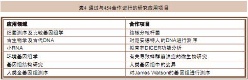 隨著越來越多重要的研究領(lǐng)域受到測序技術(shù)的影響,454公司開始和其它商業(yè)和學(xué)術(shù)機構(gòu)開展合作,進行樣品測序和分析工作。這些合作項目又進一步驗證 了454測序儀使用的技術(shù)能夠在眾多領(lǐng)域中發(fā)揮作用,例如末端配對文庫技術(shù)對于研究基因組結(jié)構(gòu)的作用和乳液PCR技術(shù)捕獲目的DNA片段的作用等。