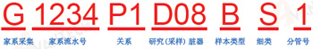 關(guān)系類中,P1 為原始本人第1 代,家系中其余關(guān)系,請(qǐng)自己定義相關(guān)的編號(hào)規(guī)則前 7 位樣本編號(hào)一致的為同一個(gè)體,同一個(gè)體的若干不同編號(hào)樣本,其個(gè)體的基本信息是一致的。