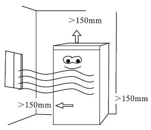 2.將制冰機(jī)放置通風(fēng)處,與墻保持不少于150mm的空間,遠(yuǎn)離熱源,確保機(jī)器平穩(wěn)放置。
