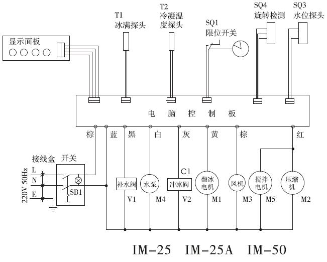 本公司生產(chǎn)的IM系列全自動制冰機(jī)為長方體外形,不銹鋼外殼,外觀美觀大方,具有制冰速度快、制冰量大、冰柱透明均勻、脫冰速度快等特點(diǎn)。從進(jìn)水一注水一制冰一泄水脫冰一貯冰一系列過程實(shí)現(xiàn)全自動電腦控制連續(xù)制冰,若遇到缺水或儲冰箱內(nèi)冰滿,制冰碎冰機(jī)操作面板上相應(yīng)指示燈會閃亮,制冰機(jī)自動停機(jī),有很好的保護(hù)功能。由于儲冰箱采用硬質(zhì)發(fā)泡結(jié)構(gòu),保溫性能好,使得所制冰塊不易融化。另外,制冰機(jī)每制完一次冰后的余水被回用,這樣既節(jié)約了水資源,同時(shí)又提高了制冰效率,減小了能源消耗,較大程度的降低了用戶的制冰費(fèi)用,因此具有綠色環(huán)保的功效。根據(jù)制冰用水方式的不同可分別采用純水制冰和自來水制冰兩種形式。