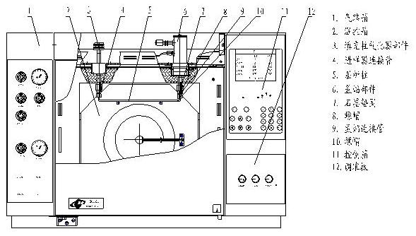 基型儀器中部是色譜柱箱,右側(cè)上部是微機溫度控制器,右側(cè)下部是FID微電流放大器,儀器左部是流量控制部件及氣路面板,柱箱上方右部是離子化檢測器安裝位置(基型安裝二個火焰離子化檢測器)以及熱導(dǎo)池檢測器(TCD)安裝位置,柱箱上方左部是雙填充柱進樣器或毛細管進樣器。