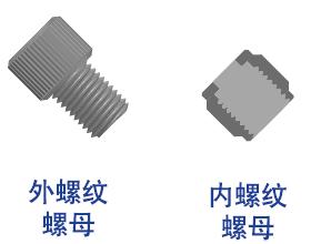 絕大多數(shù)螺母具有“外螺紋”就是說螺紋在螺母的外部。然而有些螺母卻具有“內(nèi)螺紋”也就是螺紋位于螺母的內(nèi)部一通常叫做“蓋形螺母”或“內(nèi)螺紋螺母”。