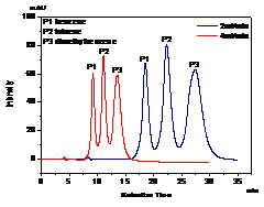 中科亞光公司對(duì)合成多肽進(jìn)行分離實(shí)驗(yàn)。實(shí)驗(yàn)表明,該產(chǎn)品(IPE-PST30)具有高分辨率和高回收率的優(yōu)點(diǎn)。其中,對(duì)人工合成15肽一步純化后可使純度由38.1%提高到78.6%;對(duì)人工合成16肽純化后可使純度由35.7%提高到89.1%;對(duì)人工合成18肽純化后可使純度35.7%提高到92.0%,回收率達(dá)到22%(如圖3所示)。
