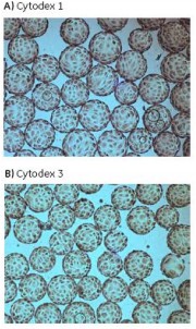 · Vero 細(xì)胞在無血清培養(yǎng)基中成功的在Cytodex 1 和 3上進(jìn)行培養(yǎng),可以獲得均勻的細(xì)胞分布,最終細(xì)胞在微載體上達(dá)到交匯。