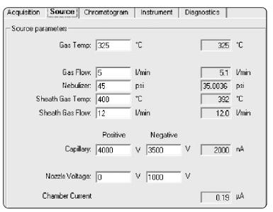 在正極模式下對4 種化合物進行了監(jiān)測。離子源條件如圖2 所示,多反應監(jiān)測通道如表2 中所示。