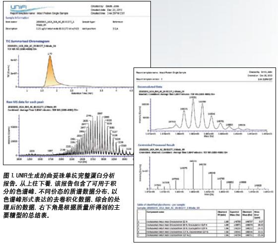 以單克隆抗體完整蛋白的UPLC®/MS分析為例,展示UNIFI™ 科學(xué)信息系統(tǒng)這個(gè)平臺(tái)在精確質(zhì)量測定、數(shù)據(jù)處理和報(bào)告方面的強(qiáng)大功能。