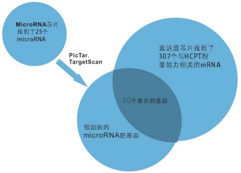 圖3:microRNA芯片篩選到差異表達的microRNA, 用軟件預(yù)測這些microRNA的靶基因,
