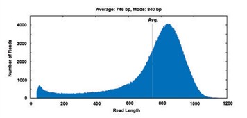 序列平均讀長達到了746bp,讀長集中在840bp左右