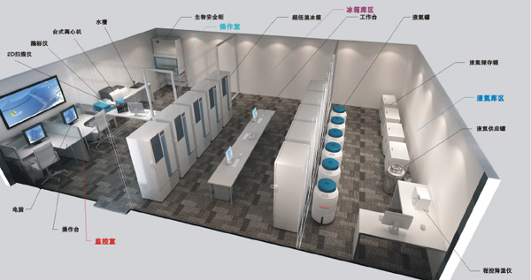 基礎(chǔ)設(shè)施一般包括質(zhì)檢室、樣本處理室、冰箱室、液氮設(shè)備室、監(jiān)控室、空調(diào)設(shè)備、備份電源等。其中需要注意的是:冰箱是產(chǎn)熱設(shè)備,需要和液氮設(shè)備分開放置。立式冰箱如不能背靠墻擺放,可保持一定距離背對(duì)背擺放?紤]到超低溫冰箱目前仍是組織庫的主要存儲(chǔ)設(shè)備,在運(yùn)行過程中會(huì)大量產(chǎn)熱,配備樣本庫空調(diào)時(shí)對(duì)其功率和性能可靠性需要給予足夠的考慮。備份電源也是樣本庫的基本配備。在供電不夠十分穩(wěn)定的地區(qū),在選擇冰箱時(shí)還要考慮到冰箱的溫度絕緣性(即滿載樣品時(shí)斷電后溫度上升的速度)。當(dāng)樣本容量足夠大時(shí),還需要考慮使用自動(dòng)化取放樣品的設(shè)備。對(duì)于特別重要的樣本,條件許可的情況下可以將樣本的備份分開放置于不同的物理地點(diǎn)以增加安全性。