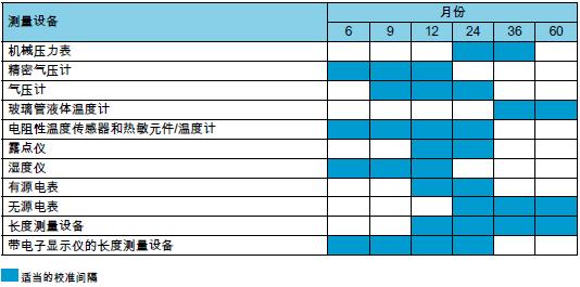 表1 測量設(shè)備的典型校準(zhǔn)間隔周期