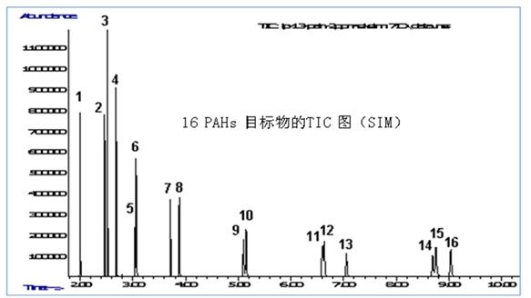 圖5:5975T可以在10分鐘內(nèi)分析出16種水中多環(huán)芳烴PAH