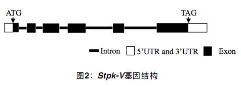 研究小組首先利用基因芯片(Affymetrix Barley GeneChip)比較Bgt感染前后的簇毛麥表達譜,發(fā)現(xiàn)Bgt感染后,共有196個基因表達量增加了一倍,其中有131個基因具有明確的功能。在這131個基因中,研究人員發(fā)現(xiàn)了4個抗性相關基因(resistance gene analogues,RGAs),而其中只有一個基因位于簇毛麥的6VS區(qū)段,這個基因就是Stpk-V。隨后研究人員用RT-PCR的方法對基因芯片的結(jié)果進行了驗證,并用RACE的方法獲得了Stpk-V基因的cDNA全長,并用可轉(zhuǎn)化人工染色體(transforma Mon-competent arMficial chromosome,TAC)文庫的方法獲得了Stpk-V基因全長,Stpk-V基因共有6個外顯子和5個內(nèi)含子。研究小組又用FISH和GISH的方法對Stpk-V進行基因組定位,證實它確實位于6VS的FL 0.45-0.58染色體區(qū)段上,這一區(qū)段正是Pm21基因簇的位置。