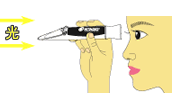 2) 透過棱鏡讀出測量值. 標(biāo)尺上藍(lán)色與白色的境界線就是測量值(%) |
