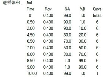 色譜柱: ACQUITY® BEH C18 1.7μm , 2.1mm x 100mm