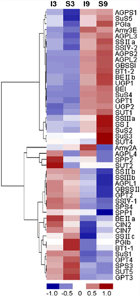 圖1. 水稻灌漿期淀粉代謝相關(guān)基因?qū)哟尉垲惙治?/DIV>