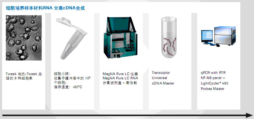 生物標(biāo)志物研究RealTime ready qPCR檢測?蓾M足不同檢測質(zhì)量要求。生物標(biāo)志物在治療性藥物復(fù)合物研發(fā)周期全程均非常重要(TWEAK復(fù)合物研發(fā)僅是一個(gè)例子。LightCycler® 480 real-time PCR 平臺聯(lián)合使用。