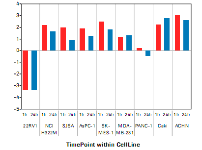 于標(biāo)準(zhǔn)條件下進(jìn)行腫瘤細(xì)胞系(ACHN、Caki、SJSA、PANC-1、MDA-MB231、AsPC-1、SK-MES、NCI-H322M、22RV1)培養(yǎng)。使用TWEAK或 Anti-TWEAK(RO5458640)分別對細(xì)胞進(jìn)行處理。于不同時(shí)間點(diǎn)收集腫瘤細(xì)胞系(0、6、24 小時(shí)),將RNA樣本存放(Qiagen)。