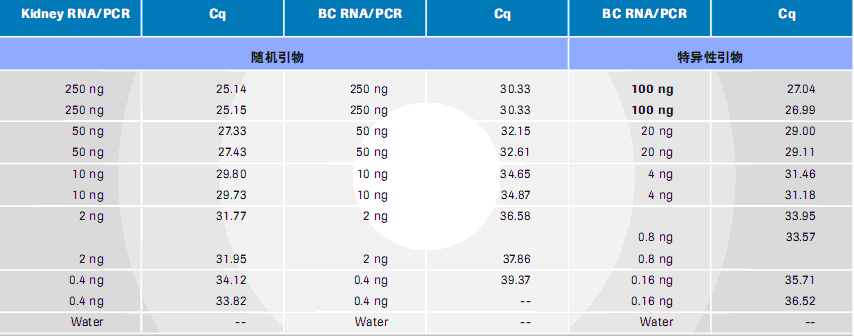 由于福爾馬林固定,以及保存條件的原因,F(xiàn)FPET樣本分離RNA呈片段狀(7)。對于FFPET來源的RNA來說,為提高靈敏性與重現(xiàn)性,使用長度小于100bp的小片段擴(kuò)增子非常重要。RealTime ready 檢測專用于小片段擴(kuò)增子的擴(kuò)增。所有擴(kuò)增參數(shù)均應(yīng)是RNA特異性,無人類基因組DNA污染?赏ㄟ^引物探針設(shè)計(jì)來避免污染,引物探針序列可跨越外顯子-內(nèi)含子交界區(qū)。假基因應(yīng)該是無法擴(kuò)增的,但并不是所有假基因均已知,或已被發(fā)表,必須在對照反應(yīng)中,使用人類基因組DNA進(jìn)行假基因檢查。RealTime ready 專用于各種 FFPE 來源的,用于人類研究的腫瘤樣本(例如:BC、CRC)的分離 RNA 檢測,并受到各種 FFPE 來源用于人類研究的腫瘤樣本分離RNA檢測的檢驗(yàn)。根據(jù)以下參數(shù),進(jìn)行最佳RealTime ready RT-qPCR檢測選擇:靈敏性、線性度、重現(xiàn)性與特異性。根據(jù)所感興趣組織中參數(shù)表達(dá)級別,cDNA合成所用特異性引物靈敏性應(yīng)該更高(參見圖 5)。
