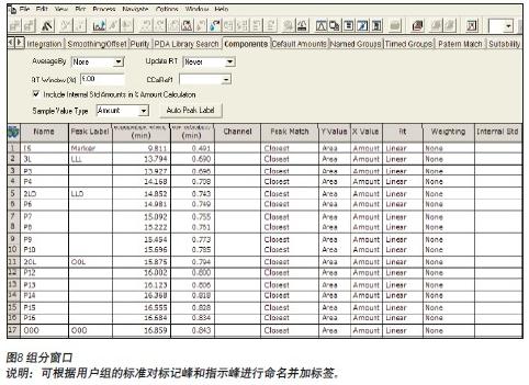 2. 將保留時間為9.81 min的峰名稱改為IS,在“峰標(biāo)簽”字段中輸入“標(biāo)記峰”,如圖8所示。
