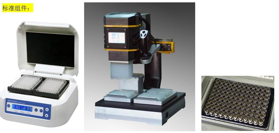 標(biāo)準(zhǔn)組件已經(jīng)可以完成核酸分離純化過程,可進(jìn)行全血,血清的核酸提取以及PCR產(chǎn)物純化。各種選用組件主要用于各種不同來源材料的前處理過程。