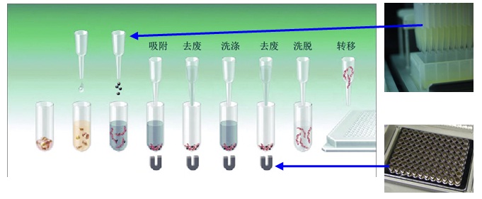 由Medusa96來承擔(dān)移液的任務(wù);微孔板恒溫振蕩器對磁珠進(jìn)行加熱洗脫。