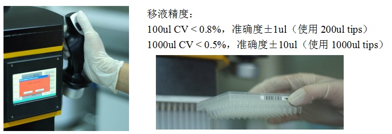 100ul CV < 0.8%,準(zhǔn)確度±1ul(使用200ul tips)