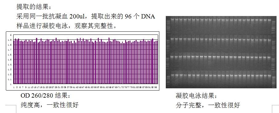 采用同一批抗凝血200ul,提取出來的96個DNA