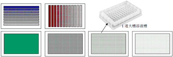 只需要配置每種溶液的系列濃度梯度,兩次移液,就能配置成 96 個(gè)不同的組合溶液!
