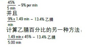 計算在2.47分鐘洗脫色譜峰的乙腈百分比。原始大規(guī)模梯度在5分鐘內(nèi)洗脫 5-50% B,最初梯度的駐留時間為0.39分鐘。