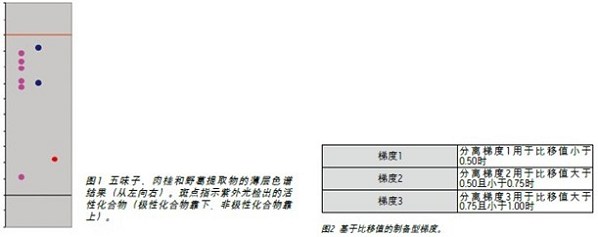 提取物使用正己烷和乙酸乙酯的混合液在5 x 20 cm的TLC硅膠板上(Partisil LK6F硅膠60A及熒光指示劑,英國梅德斯通市沃特曼公司)進(jìn)行分離。通過將層析板暴露于紫外光下并觀察斑點而實現(xiàn)了樣品的可視化。比移值從這些觀察結(jié)果中得出。