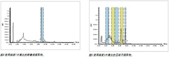 圖4和圖5顯示了使用所述技術(shù)分離出的野葛根提取物和五味子提取物。這三種天然產(chǎn)品提取物的色譜圖與薄層色譜板得出的結(jié)果類似,表明此項技術(shù)提供了一種適合的工作流程。一旦分析完成,樣品結(jié)果可根據(jù)需要電郵發(fā)送給用戶或打印出來。系統(tǒng)管理員可決定登錄準(zhǔn)入權(quán)限、方法選擇和報告生成,進(jìn)而完成系統(tǒng)配置和設(shè)置。系統(tǒng)管理員也可增加或減少用于分析選擇的可用方法個數(shù)。2545型四元梯度模塊可同時選擇四種溶劑,這提供了選擇多種緩沖液或替代型有機(jī)改性劑的可能性。制備型色譜架可便捷容納多根色譜柱和一對進(jìn)樣器,從而增加了方法選擇的靈活性。