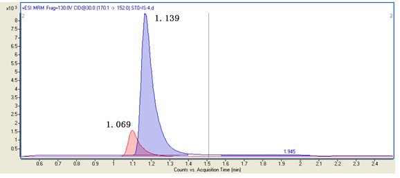 1. 4-氨基聯(lián)苯-D9(1.069min);2. 4-氨基聯(lián)苯(1.139min)
