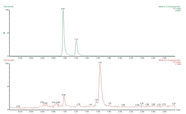 同時(shí)由于目標(biāo)化合物極性很大,對(duì)于前處理的要求非常高,分離提取是個(gè)難點(diǎn),而沃特世公司的固相萃取方案能使樣品達(dá)到非常好的凈化效果,通過(guò)Oasis MCX進(jìn)行保留分離,同時(shí)能夠減少樣品雜質(zhì)對(duì)于色譜柱以及整個(gè)儀器系統(tǒng)的損害。由沃特世ACQUITY UPLC H-CLASS-PDA和ACQUITY UPLC / Xevo TQ MS所提供的超高效性能以及靈敏度,使得4-甲基咪唑和2-甲基咪唑的分析達(dá)到理想效果。