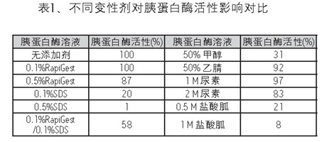 RapiGest SF自2002年推出以來,已經(jīng)過10年的使用,它良好的性能被廣泛認可,對各種蛋白酶、肽-N糖苷酶等多種酶解過程都適用[5]。RapiGest SF已經(jīng)成為大部分生物質(zhì)譜科學(xué)家的常規(guī)必備試劑。