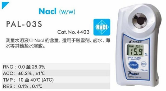 融雪劑濃度、用量與融雪效果密切相關(guān),同時控制融雪劑的用量,檢測融化后的鹽水濃度,可以最大的降低對道路橋梁、土壤生態(tài)的破壞作用。ATAGO氯鹽類手持式濃度快速測定儀可以快速方便隨身攜帶,在3秒之內(nèi)的測量各類氯鹽了,如氯化鈉(NaCl)PAL-03S( 氯化鈉濃度計)、氯化鈣(CaCl2)PAL-41S( 氯化鈣濃度計)、氯化鎂(MgCl2)的濃度PAL-43S( 氯化鎂濃度計)。