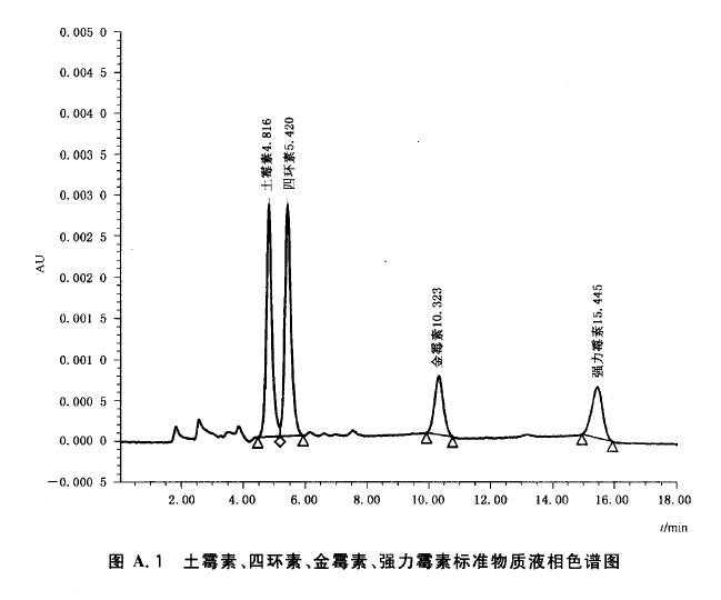 目前常見的非法添加抗生素主要是抗生素的過量使用,以常見的抑菌類抗生素—金霉素為例,《允許作飼料藥物添加劑獸藥品種及使用規(guī)定》中指出,食用動物(包括肉雞)的使用年齡上限為10周,最高用量為5000萬單位/噸(配合飼料),并且補充要求在高用量時低鈣飼料連用不得超過5天。過量使用會導致雞肉中殘留金霉素超標。農(nóng)業(yè)部《動物性食品中獸藥最高殘留限量(農(nóng)業(yè)部2002年235號公告)》要求,金霉素在雞肉中殘留量不得超過100 μg/kg。國家質(zhì)量監(jiān)督檢驗檢疫總局也發(fā)布標準《GB/T 20764-2006 可食動物肌肉中土霉素、四環(huán)素、金霉素、強力霉素殘留量的測定 液相色譜-紫外檢測法》,明確了檢測方法及檢測限度。
