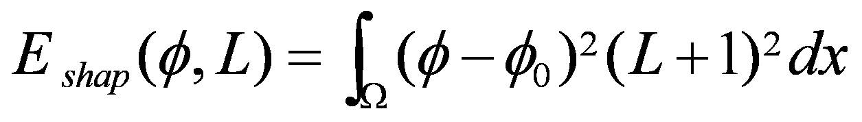 式中,L定義了形狀先驗(yàn)知識(shí)發(fā)生作用的范圍, L=-1的區(qū)域排除在積分之外。這種方法嚴(yán)格規(guī)定了形狀信息的位置和大小,在實(shí)際應(yīng)用中受到局限。