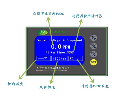 在華風凈氣柜產(chǎn)品液晶顯示屏上以ppm為單位顯示過濾器后TVOC濃度與實驗室空氣質(zhì)量狀況。出廠前會根據(jù)客戶的實際操作進行報警點設(shè)置,當過濾器后的氣體化學品濃度和室內(nèi)空氣達到報警點時,聲光報警器會工作,提醒客戶進行更換過濾器,和檢查室內(nèi)污染源。以ppm 為單位的一個很大特點是客戶可以一目了然地得知過濾器的工作狀態(tài),室內(nèi)空氣質(zhì)量的水平, 可自行判斷過濾器的剩余容量還有多大。