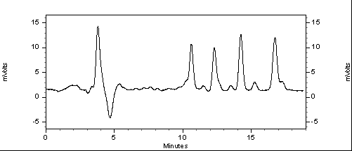 上述結果顯示,基線噪音(0.2mv),靈敏度,信噪比(>10),柱效(>9000),主峰之間的分離度(>1.5)。