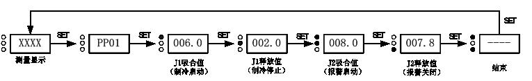 現(xiàn)設(shè)置以下溫度舉例說明:冷柜溫度范圍2~6℃(制冷系統(tǒng)在高于6℃時啟動,低于2℃時停止),箱內(nèi)溫度超過8℃時報警。設(shè)置步驟如下: