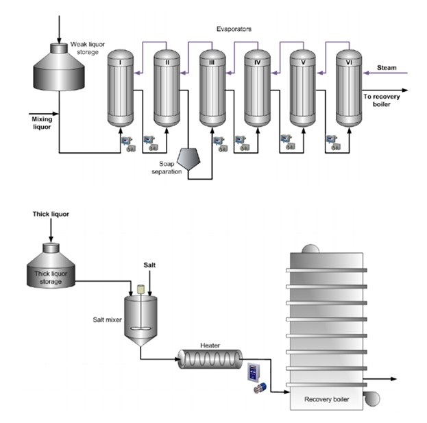 折射計(jì)應(yīng)用的重要區(qū)域是紙漿洗滌操作。通過(guò)監(jiān)視洗漿裝置出口處的濃度以滿足蒸發(fā)器工藝過(guò)程的需要。此種應(yīng)用安裝非常方便,并且極大地減少了手工采樣的工作量。在蒸發(fā)器中,濃度和溫度輸出信號(hào)可以用于監(jiān)視蒸發(fā)效率、檢測(cè)問(wèn)題和運(yùn)行的經(jīng)濟(jì)性。濃縮好濃縮好的濃黑液在進(jìn)入儲(chǔ)罐和堿爐前必須檢測(cè)固形物含量(濃度),以確保操作人員和堿爐安全。