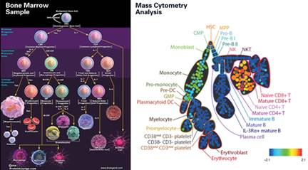 圖2. To read cells' minds——質(zhì)譜流式可以對骨髓細(xì)胞進(jìn)行的細(xì)致分類和信號通路分析