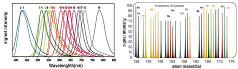 ICP質(zhì)譜具有超高的分辨能力,可以完全區(qū)分開用來標(biāo)記的各種元素(如右圖所示)。這樣不僅使實驗流程得到簡化,也節(jié)約了標(biāo)本和試劑。