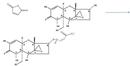 20-100mg嘔吐毒素,與1-3mol馬來(lái)酸酐,在2-5ml甲苯中,于80℃攪拌反應(yīng),8-20h后,蒸干溶劑,酸化,萃取,重結(jié)晶后得到嘔吐毒素半抗原。