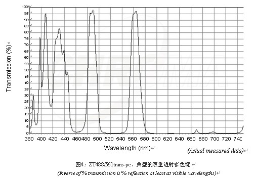 在全內(nèi)反射熒光顯微鏡設(shè)備中,發(fā)射片的阻塞必須大于OD 6,并且在許多應(yīng)用中甚至要達(dá)到OD 8。僅在幾年前,這還被認(rèn)為是不可能的,但由于使用了高級(jí)的鍍膜技術(shù)和非常特殊的訣竅之后,現(xiàn)在已經(jīng)是相當(dāng)普遍了。