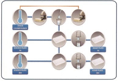 該系統(tǒng)是為儲存凍存管及微孔板并處理所有化合物管理活動(包括重組、分析板制備、Hits picking和QC等)而設(shè)計,上述功能的集中處理有助于優(yōu)化資源、減少成本,而且對化合物質(zhì)量的持續(xù)有效控制能夠保證篩選結(jié)果的可靠性。